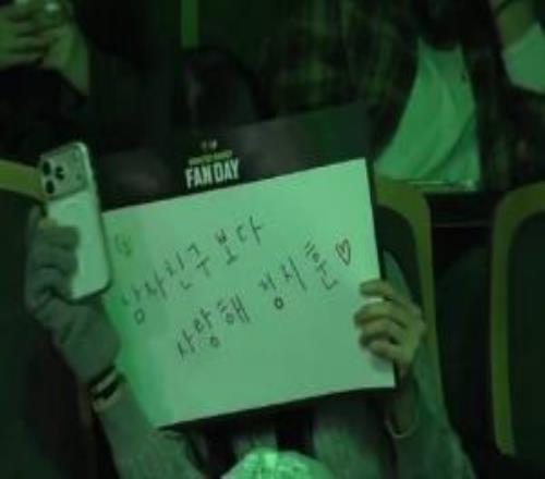 电竞体育1月3报道 GEN全员新年见面会上,观众席上一名女粉丝高举“比起男朋友我更爱你郑志勋”的应援牌!
