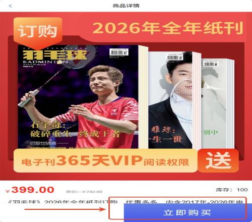 《羽毛球》2026全年纸刊预售开启!订全年纸刊送电子刊365天VIP阅读权限。快来订购吧,太优惠啦!